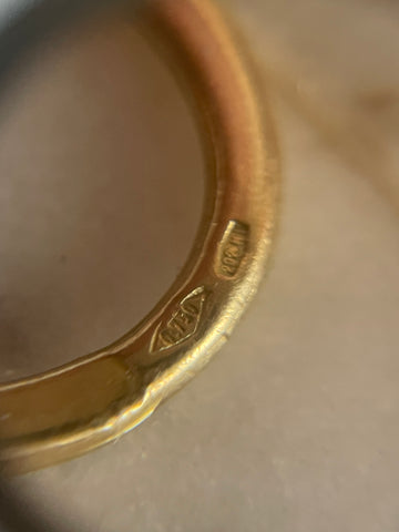 An 18ct gold nail has been wrapped around itself to form an almost ankh like shape.