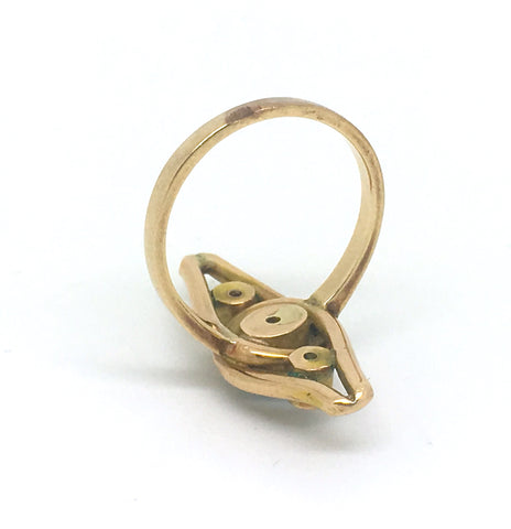 A lovely turquoise and pearl panel ring dating to circa 1920.