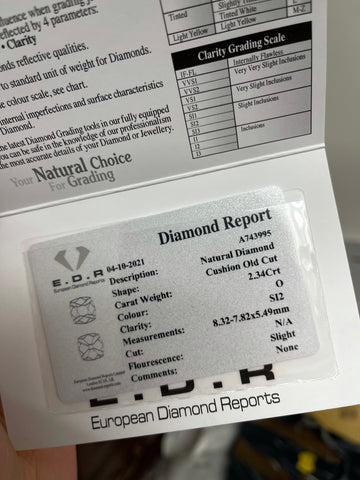 A stunning 2.34ct old cut cushion diamond I have set into a vintage 18ct gold mount with ten prongs.