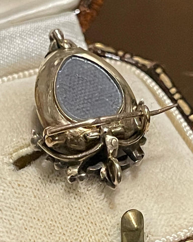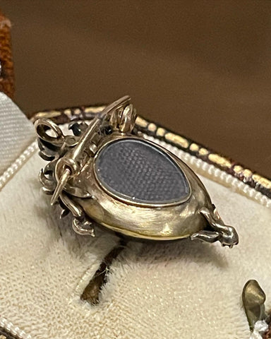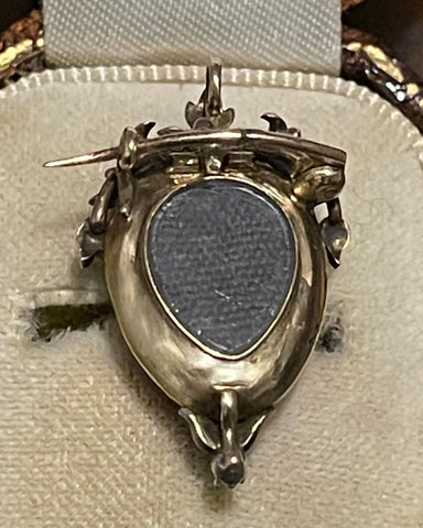 It has a brooch fitting and a pendant loop and is complete with a locket compartment.