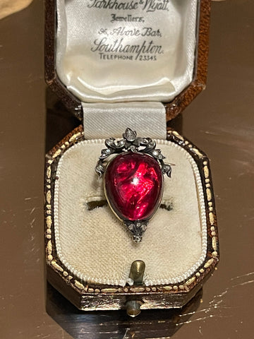 The garnet carbuncle is foiled and set in silver and gold that is testing as 14-15ct.