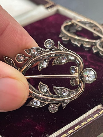They are set with approximately 10cts of old cut diamonds in silver and 15ct gold.